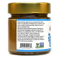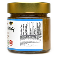 Regular Size: 300g / 10.58 oz. Serving size, 1 teaspoon (10 g). Servings per bottle, 30. Ingredients: Organic Honey, Raw Bee Pollen, Sage, Fennel, Cummin, Cinnamon, Mustard Seed, Anise Seed, Coriander, Ginger, Cloves and Fenugreek. *All herbs are certified-organic (USDA and OPCC/Pro Cert. Canada)